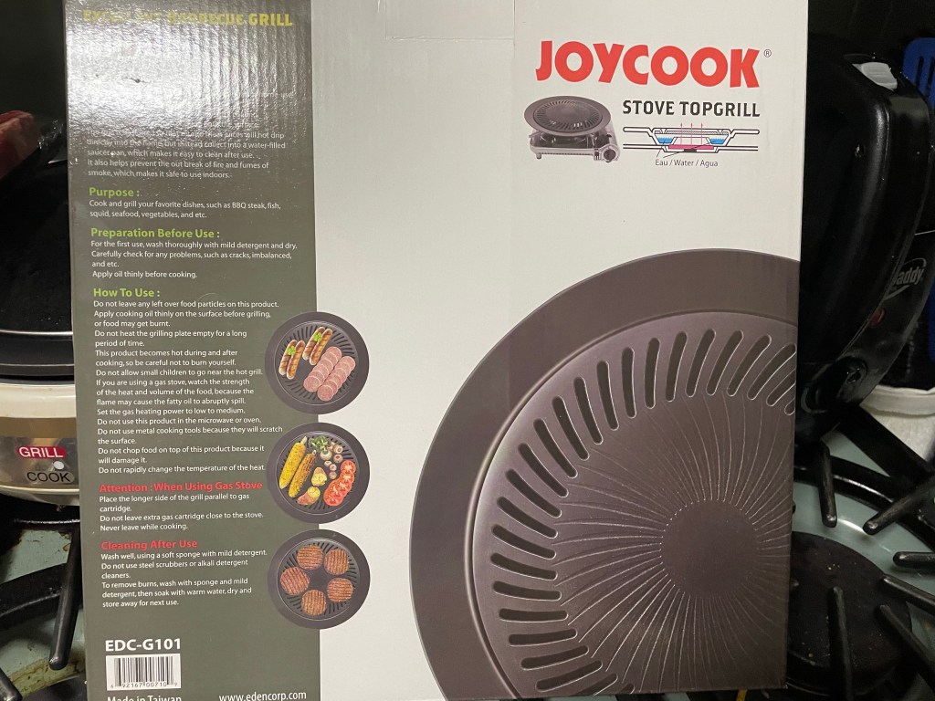 I was at the Asian grocery the other day and shopping for hot pot ingredients and saw this indoor grill thing. I said to myself, hey that looks interesting and I impulsively bought it.